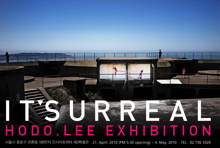 비논리적, 비현실적 풍경은 이번 전시회에서 작가 이호도가 보여주고자 하는 사진예술의 가능성 중의 하나이다. 초현실을 표현하는 것은 미술에서나 가능한 것이고 사진은 항상 실재를 전제했었다. 켄타우렌을 그릴 수는 있다. 그것을 사진으로 찍자면 만든 것이라도 카메라 앞에 세워야 한다. 이렇게 미술에서나 가능했던 초현실세계가 사진으로 넘어온 것은 얼마 전에 일이었다. 먼저 아날로그 사진작가들이 가위와 접착제와 붓으로 현실들을 비현실적으로 조립했었다. 그후 디지털 카메라와 컴퓨터는 완벽하게 초현실적 사태를 조립할 수 있는 가능성을 사진작가들에게 열어 주었다. 오늘날 아날로그 작가들도 때로 결과물을 스캔하여 컴퓨터 작업을 통해 모티브를 결합하고 색을 변화시킨다. 결과물의 변형을 원치 않는 작가들은 퍼포먼스나 장면구성을 통해 ‘비현실적인 현실’을 작품화한다. ‘사진은 실재의 보도이자 기록’라는 공식은 낡은 자부심이다. 그렇다고 이호도의 작업들이 몽타쥬나 장면구성의 결과라는 것은 아니다. 작가는 장면구성없이, 이미지 조립없이 현실속의 비현실, 실재지만 비실재처럼 보이는 관계를 보여주고 있다.